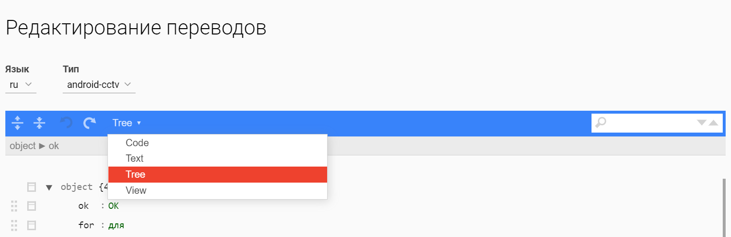 Чтобы изменить тип отображения, нажмите на «Tree» и в выпадающем списке выберите необходимый тип: