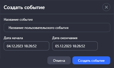 В разделе «Архив» предусмотрено создание настраиваемых пользовательских событий с указанием временного периода события.