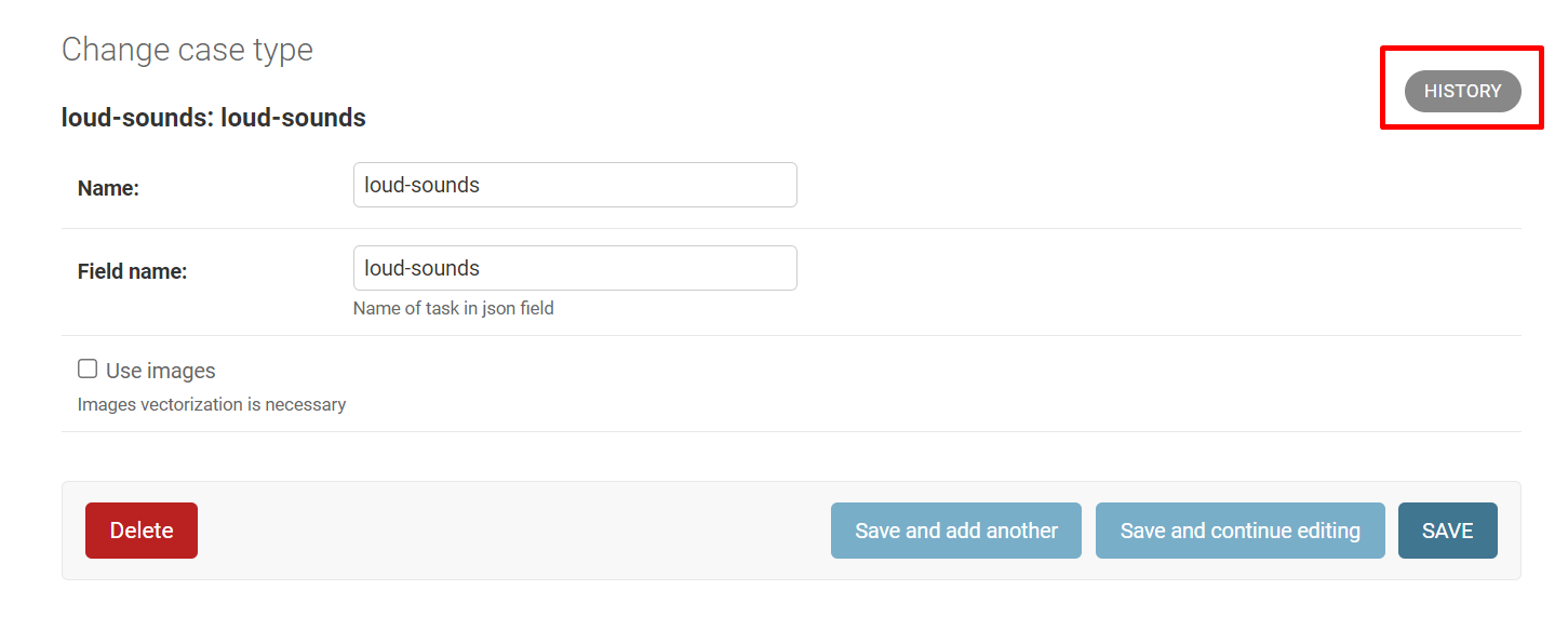 Чтобы открыть историю изменений типа аналитики, перейдите в раздел «Case types», нажмите на нужный тип аналитики и нажмите «History».