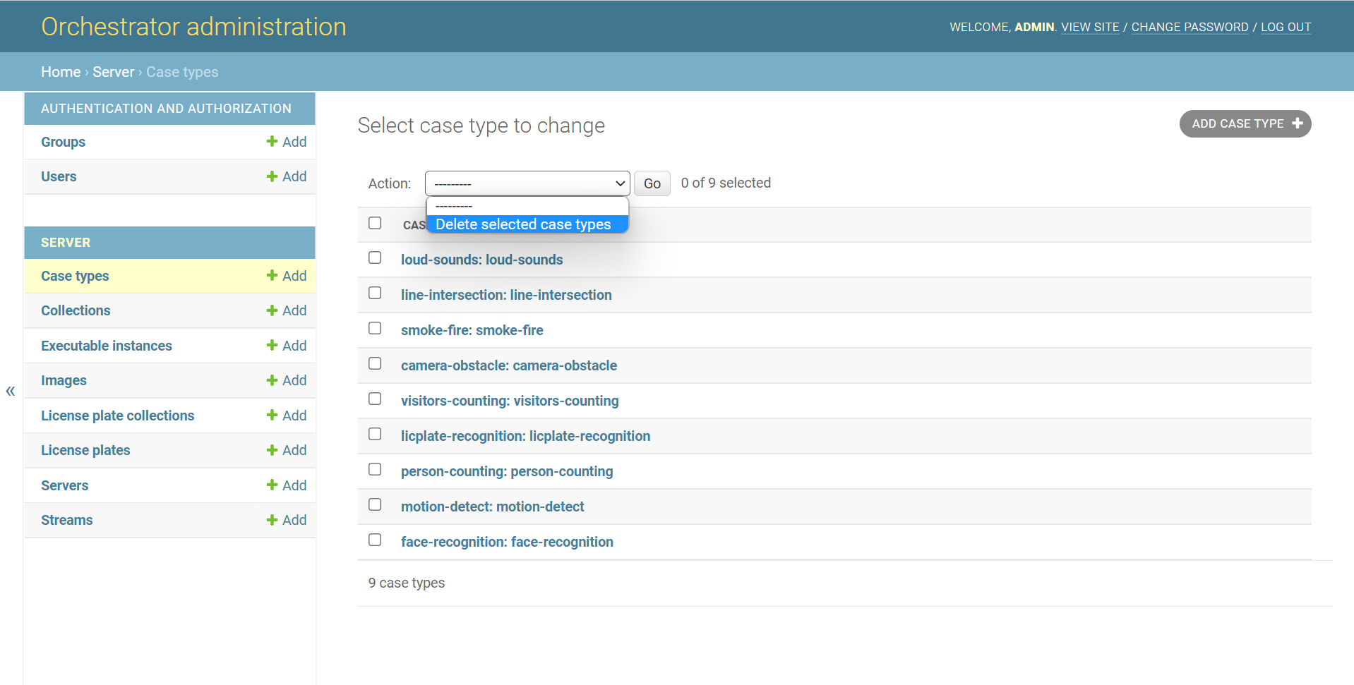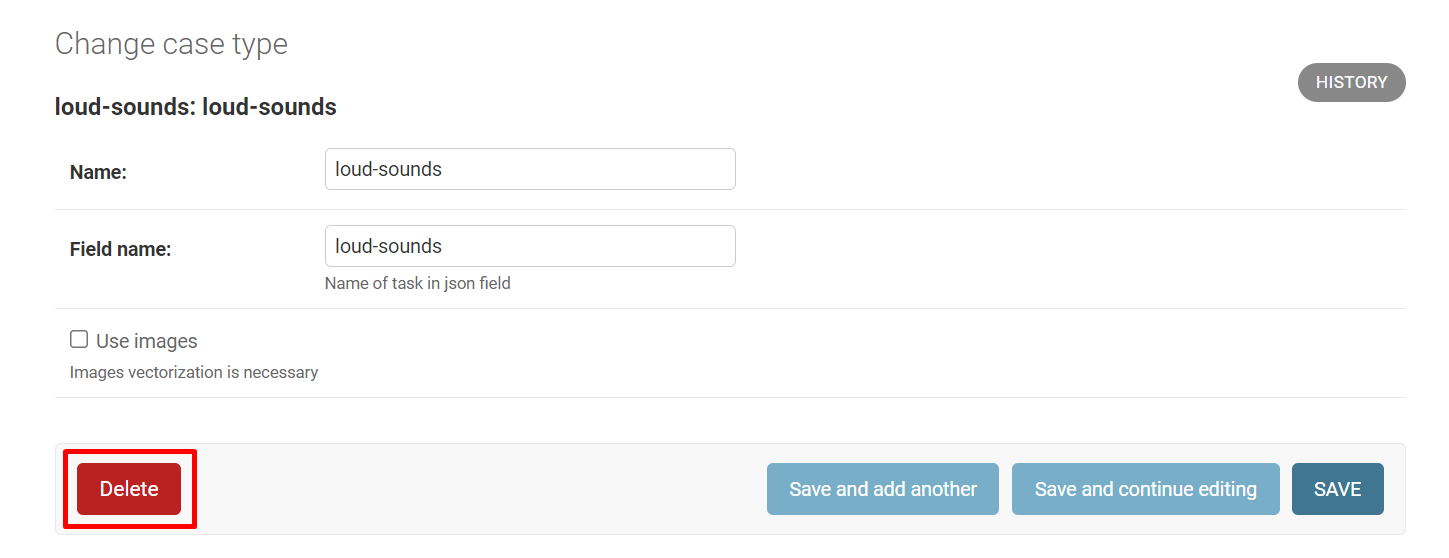 Чтобы удалить тип аналитики, перейдите в раздел «Case types», нажмите на нужный тип аналитики и нажмите «Delete».