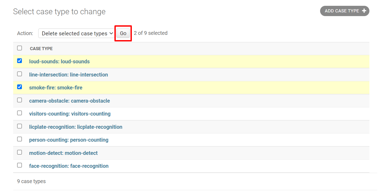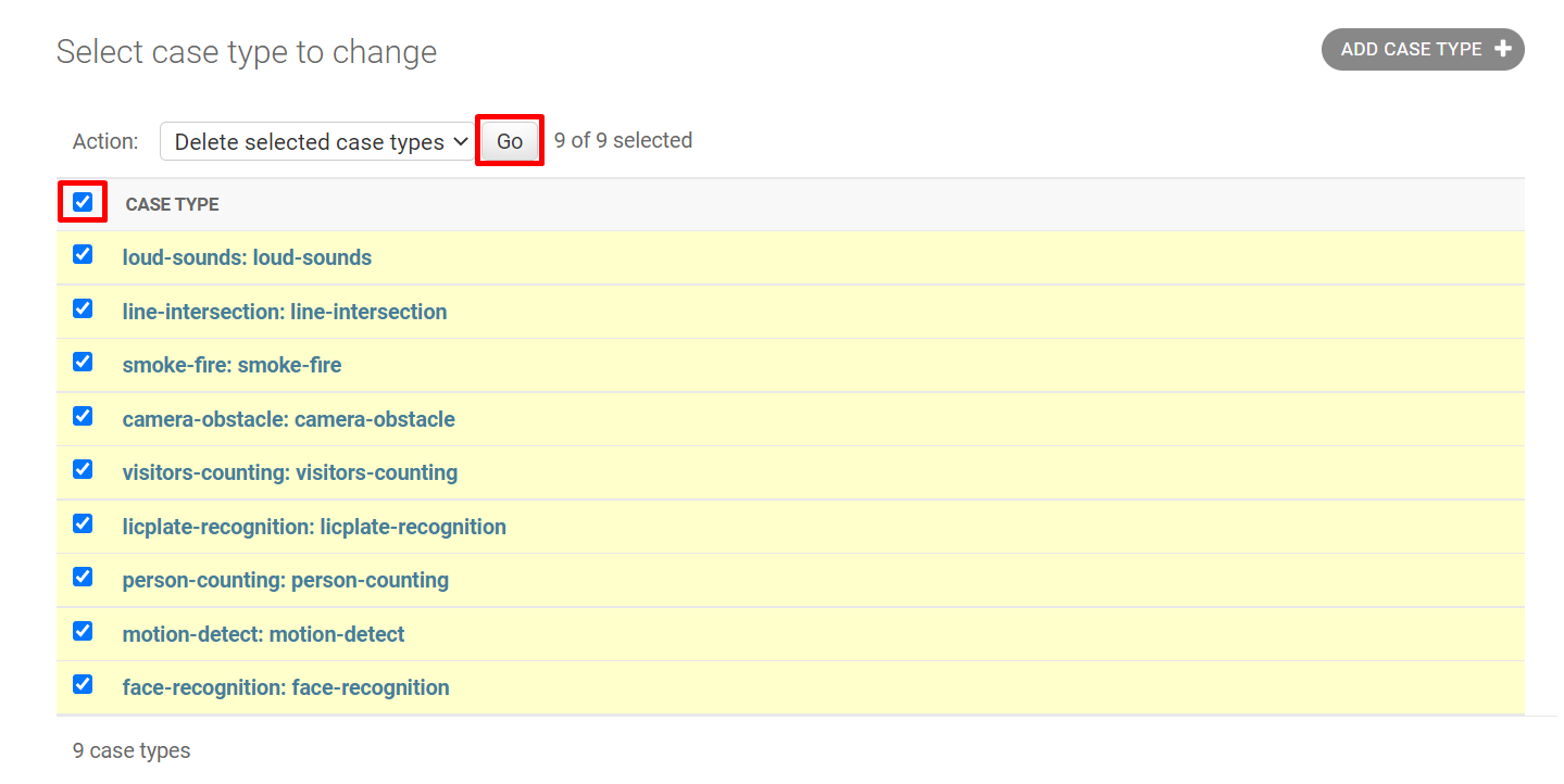 Если необходимо удалить все типы аналитики, нажмите на чекбокс слева от «Case type»