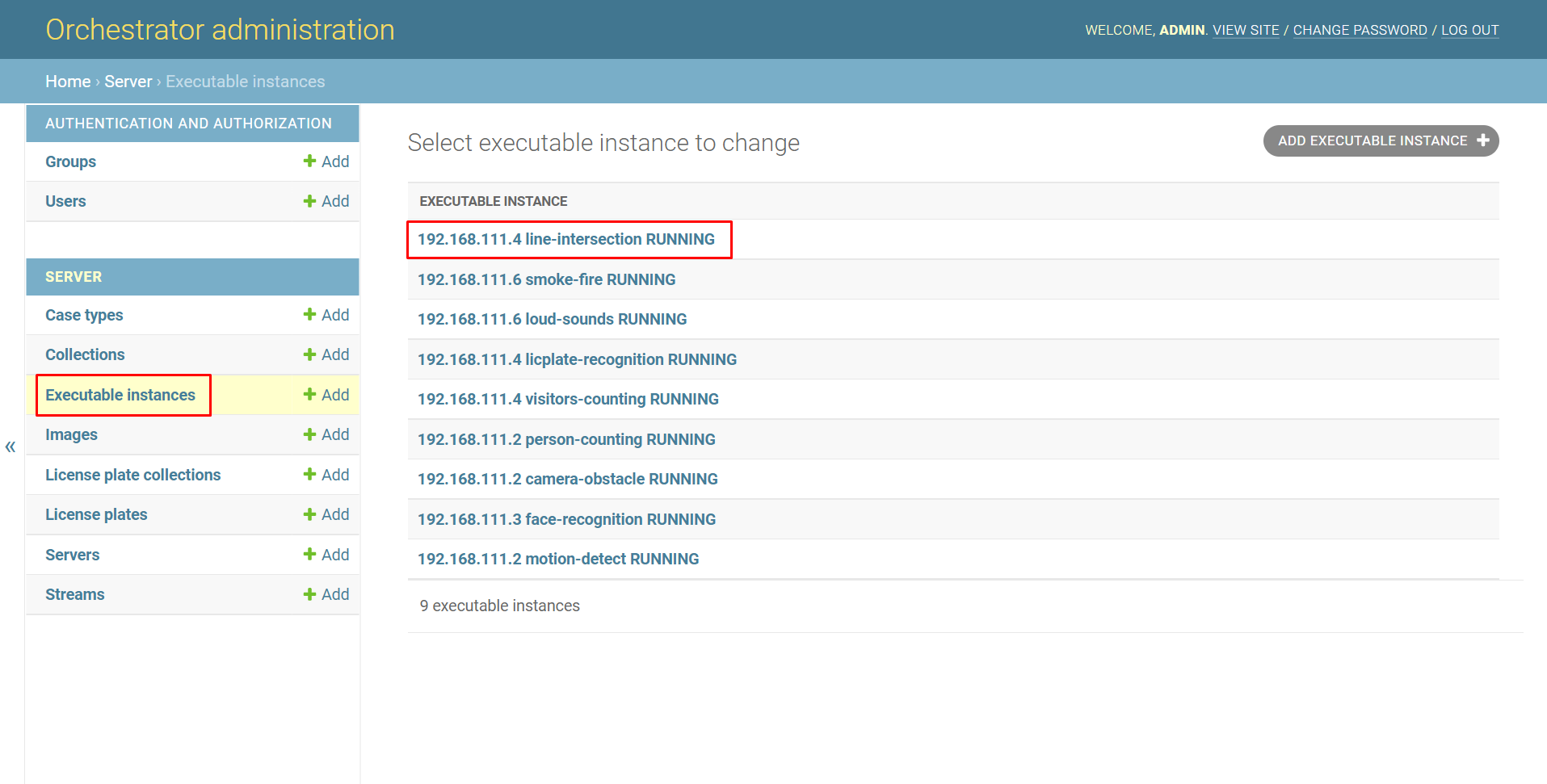 Чтобы посмотреть информацию о конкретном исполняемом файле, откройте страницу «Executable instances», выберите конкретный исполняемый файл и нажмите на него.