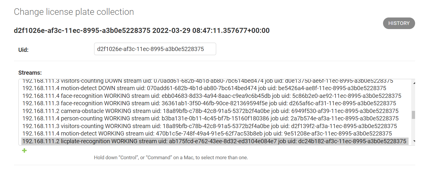 «Streams» – список стримов, на которых используется конкретная коллекция