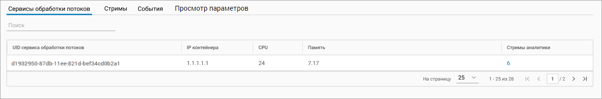 UID сервиса обработки потоков – UID сервиса обработки потоков. При нажатии выполняется переход на вкладку «Сервис обработки потоков» с фильтрацией UID сервиса обработки потоков