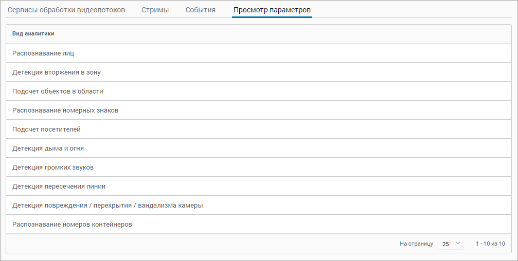 При нажатии кнопки редактирования параметров выполняется переход на вкладку «Просмотр параметров». Здесь выполняется редактирование параметров аналитики для кейса аналитики, в котором задействован выбранный видеопоток камеры.