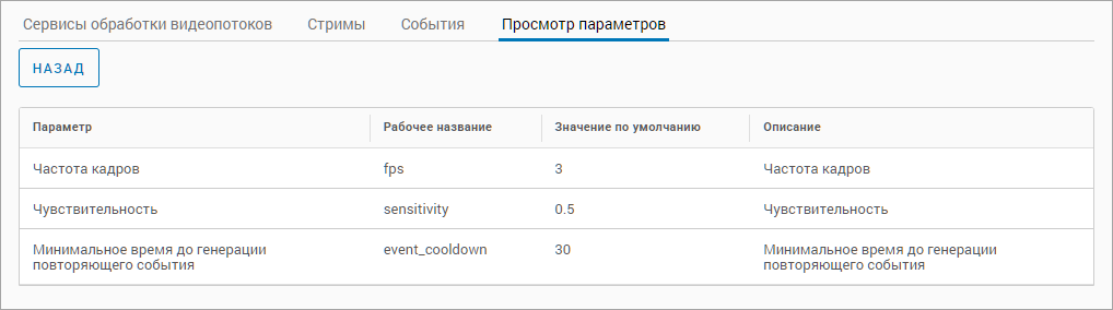 Параметры применяются по умолчанию при создании нового кейса аналитики. Предусмотрена возможность их редактирования для задействованных видеопотоков камер (см. выше вкладку «Стримы»).