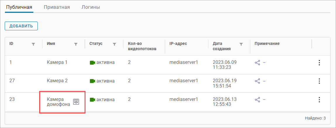 Для камер, добавленных вручную, по умолчанию установлено значение «1». Значение редактируется (при наличии соответствующего права доступа)