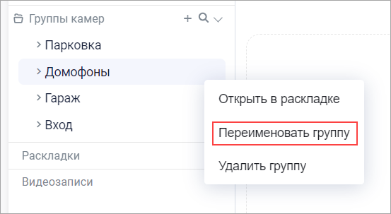 После подтверждения выбранные камеры отобразятся в группе камер.