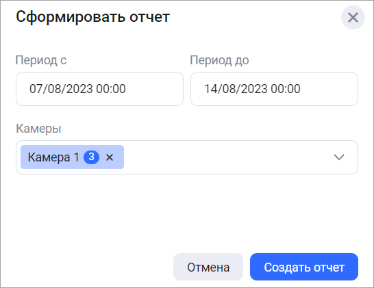 Укажите, для каких камер будет сформирован отчет.