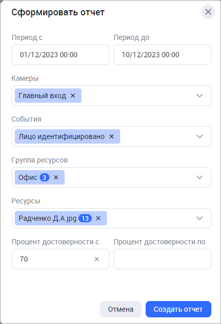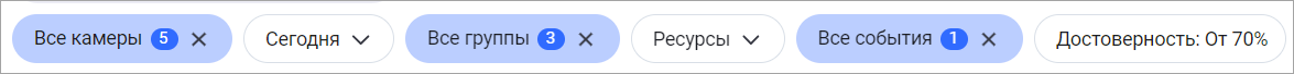 • Группы – отображаются только события, в которых для распознавания лиц использовались выбранные группы ресурсов