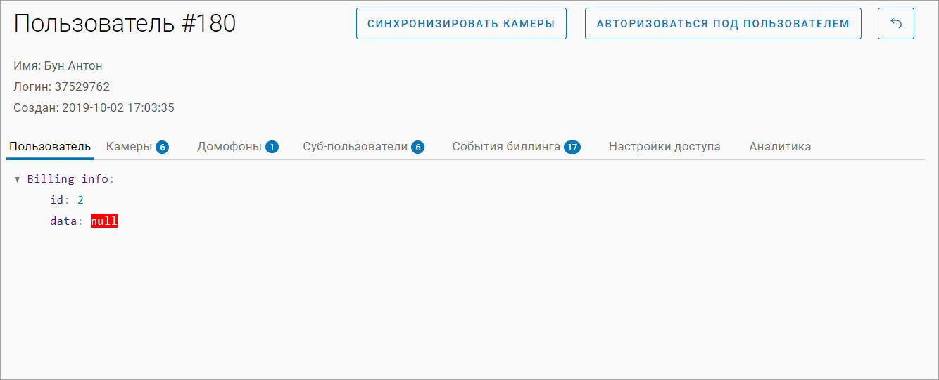 • Пользователь – общая информация о пользователе с биллинга Заказчика