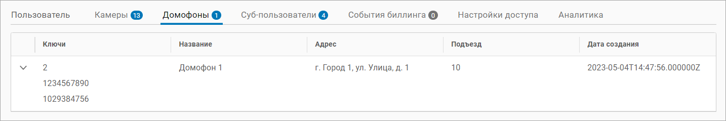 На вкладке «Домофонцы отображается список домофонов», которые доступны пользователю.