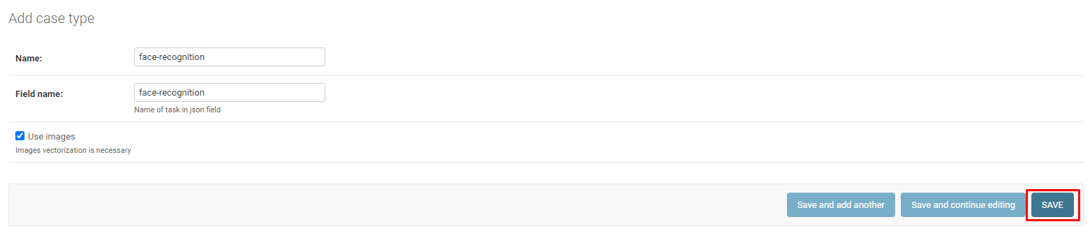 При необходимости векторизации изображений отметьте чекбокс «Use images» для типа аналитики «face-recognition».