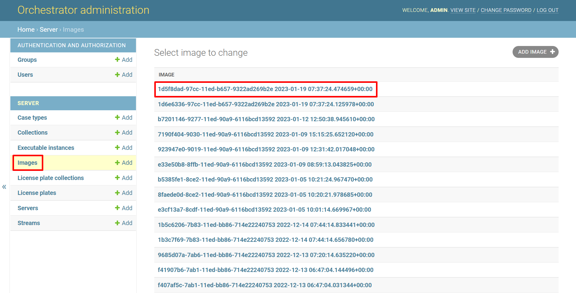 Чтобы посмотреть информацию о конкретном изображении, откройте страницу «Images», выберите изображение и нажмите на него.