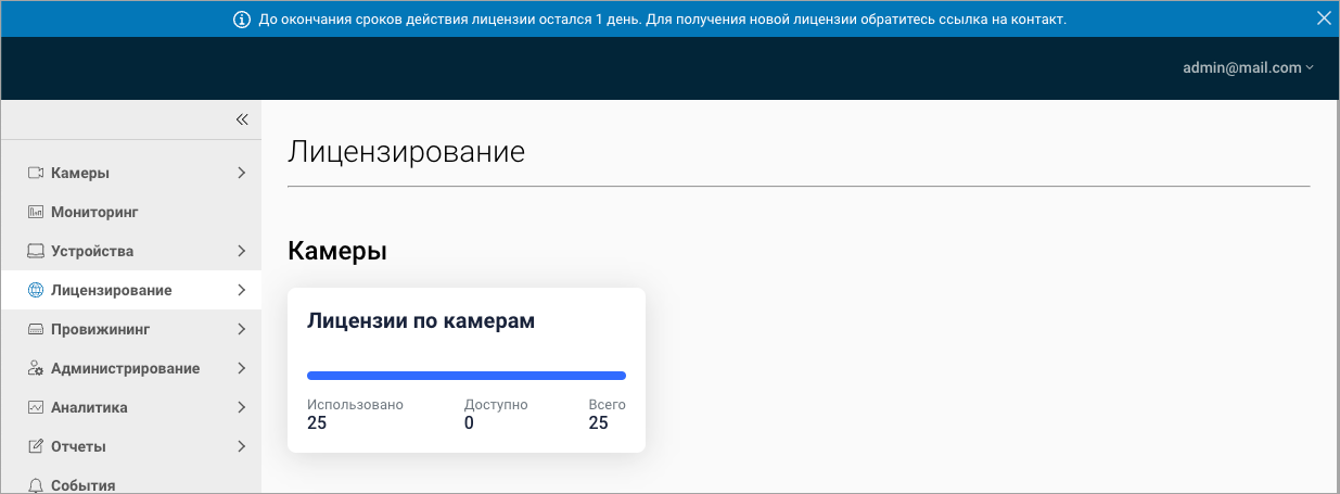 Также сообщение отображается за один день до окончания срока действия лицензии.