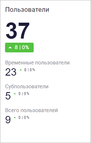 Количество суб-пользователей, а также изменение количества в численном и процентном соотношении за указанный период
