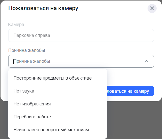 При возникновении проблем с камерой предусмотрена возможность пожаловаться на некорректную работы камеры.